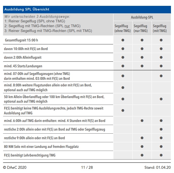 Wenn Rechte für TMG angestrebt werden, können bis zu 9 Stunden Flugzeit auch auf Segelflugzeugen durchgeführt werden.