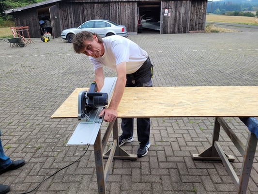 Zu dieser Zeit gab noch keine Halle. Da nur eine Schutzhütte für Werkzeug und Getränke.